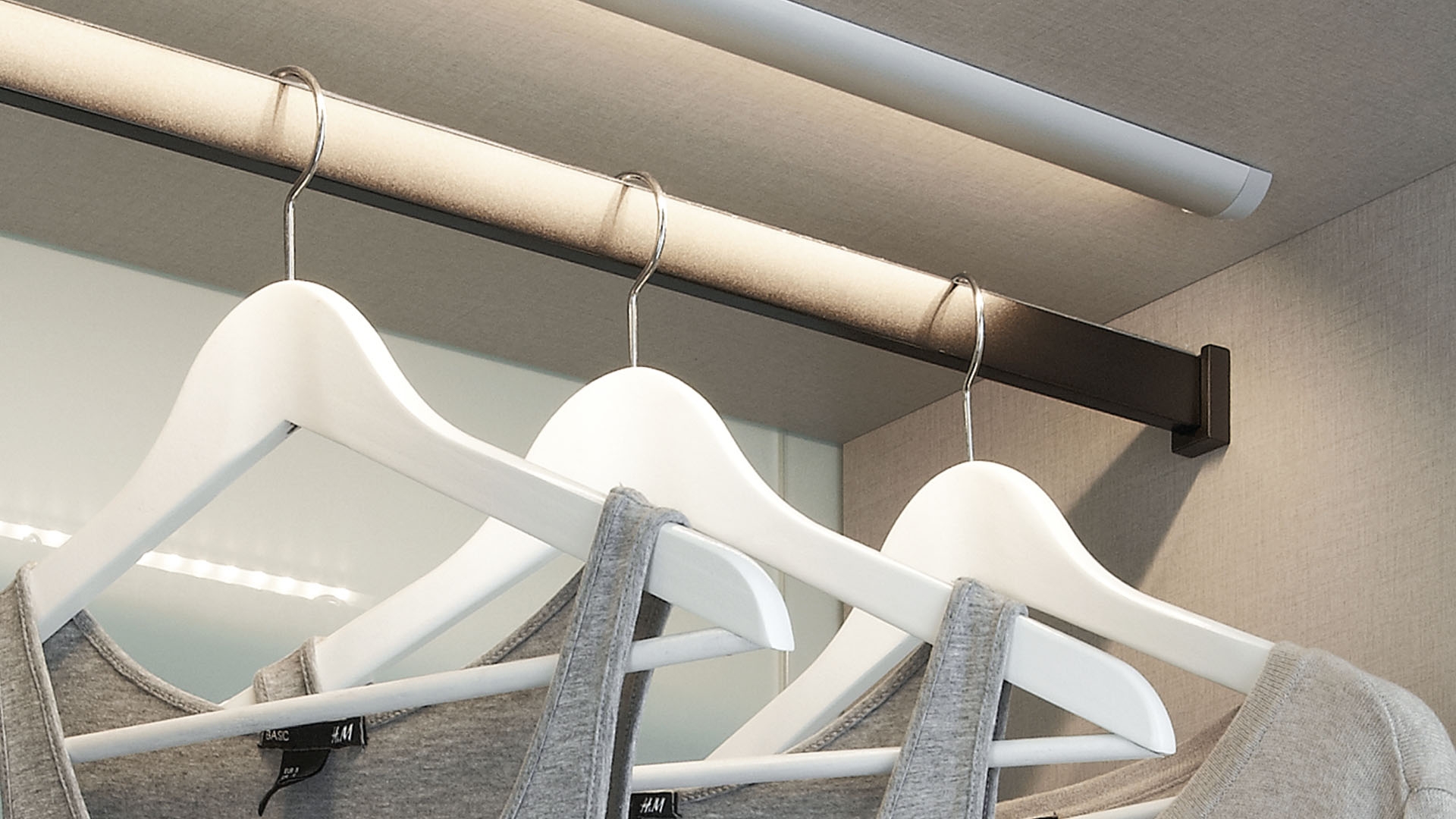 Штанги и держатели необходимы для размещения одежды внутри шкафов. Штанга (труба) выступает в качестве несущей конструкции для вешалок, плечиков и т.п. Держатели используются для фиксации штанги. В зависимости от вида крепления, они могут быть боковыми, верхними, торцевыми и даже угловыми. Накладной боковой держатель фиксируется на стенке шкафа. Сверху на него устанавливается штанга. Она может как прочно фиксироваться, так и просто лежать на держателе в специальном углублении.