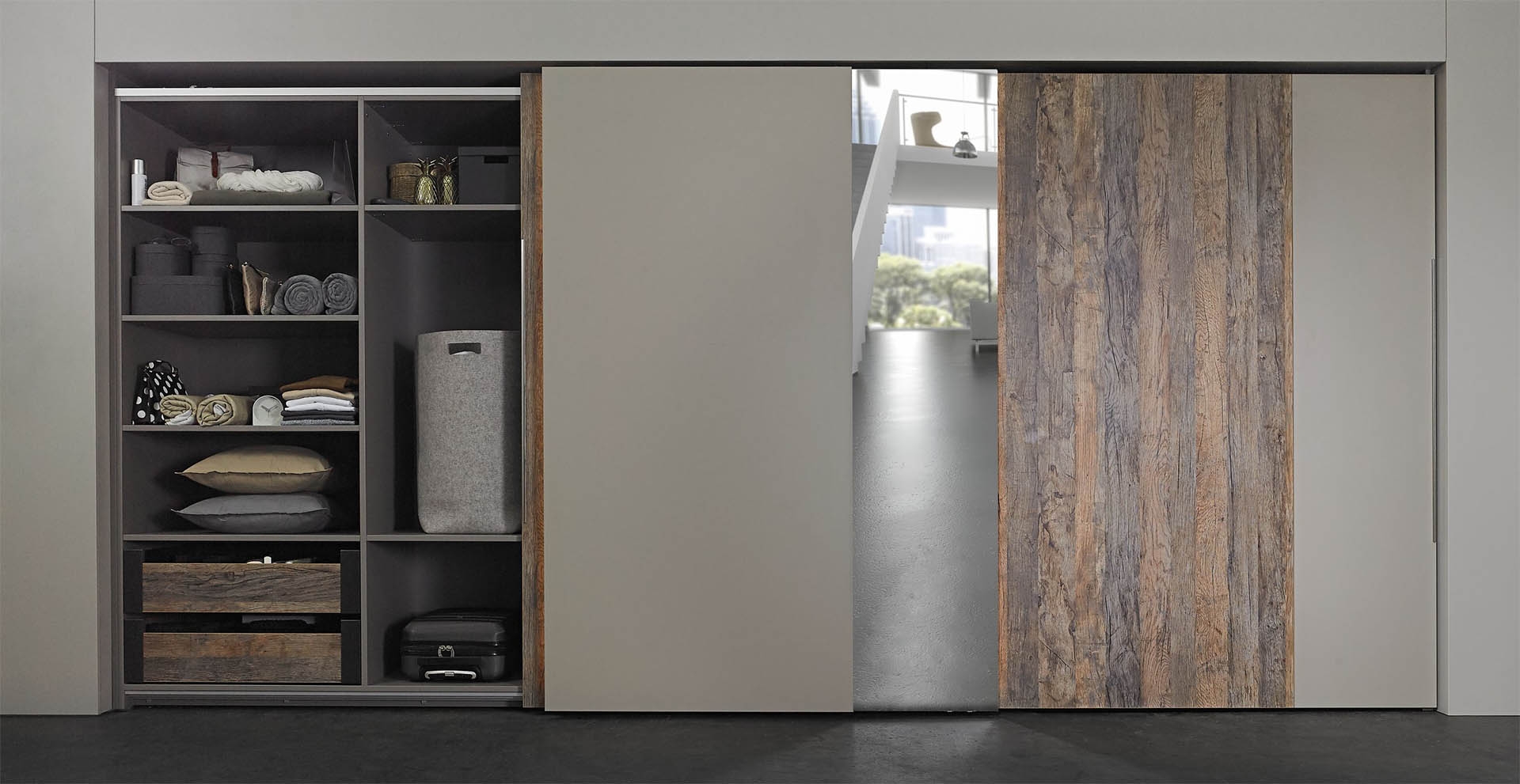 Массивные раздвижные двери от пола до потолка выглядят элегантно в интерьере и создают особый акцент в комнате. Новое поколение системы TopLine XL - ключ к созданию шкафов с фокусом на изысканный дизайн. Система устанавливает новые стандарты в эксплуатации, безопасности и легкости монтажа.